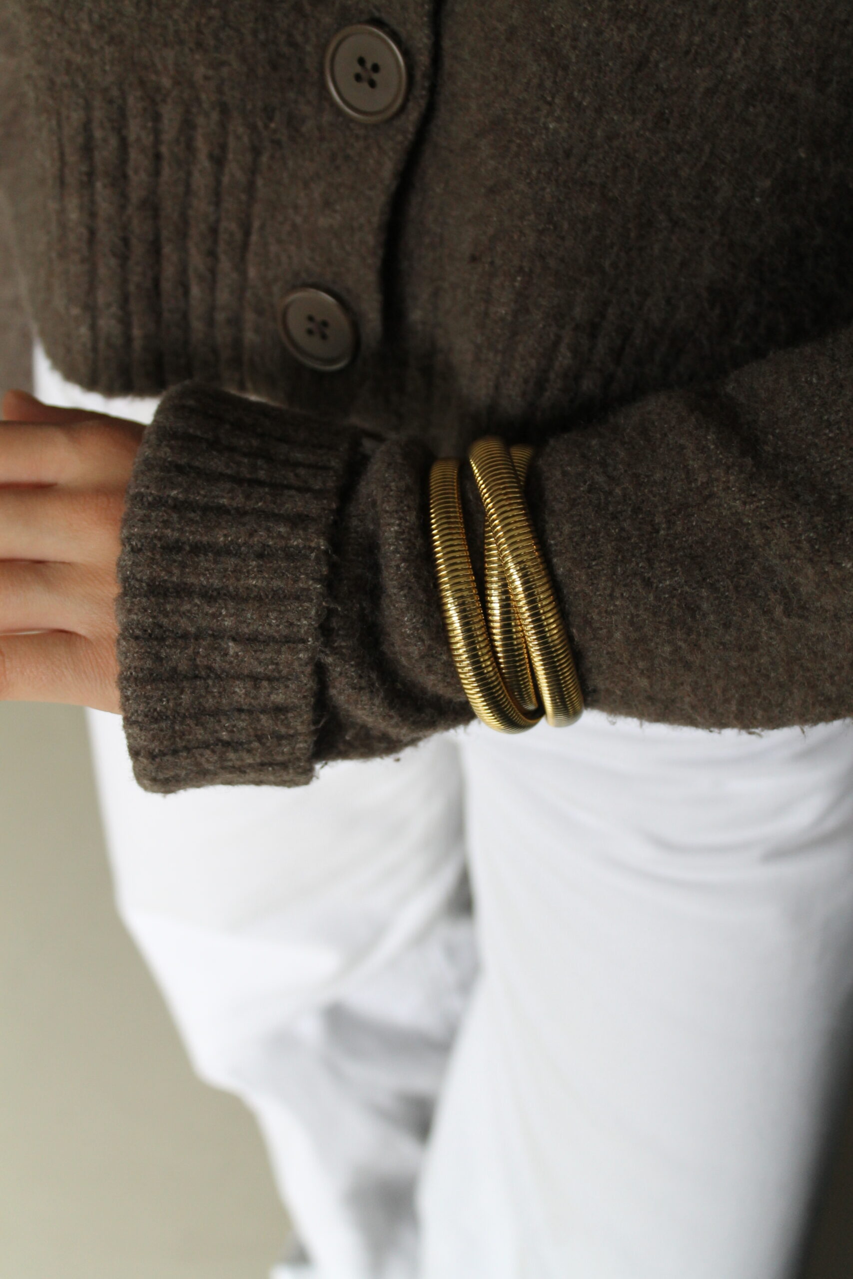 Onze armband heef drie banden. Dit geeft een mooi effect aan de armband waardoor het lijkt alsof je er drie om heb! Je kunt de armband vormen zoals jij dat wil!